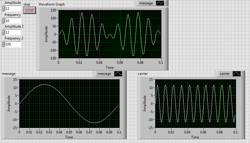 LabVIEW offers a practical platform for implementing and simulating Amplitude Modulation (AM), Frequency Modulation (FM), and Phase Modulation (PM). Students can visualize and interact with modulation processes using LabVIEW’s graphical programming environment, which simplifies the complex mathematics behind these techniques. By creating simulations, students can experiment with different parameters and observe their effects on the modulated signals in real-time. This hands-on approach enhances understanding of how modulation works and its applications. LabVIEW’s interactive features make it easier for engineering students to grasp these fundamental concepts, reinforcing theoretical knowledge through practical, visual experimentation.