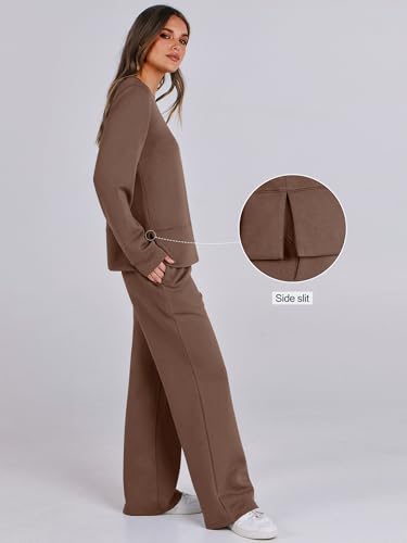 ANRABESS Womens 2 Piece Outfits Long Sleeve Sweatsuit Wide Leg Pants Set Lounge Travel Fashion Tracksuit Clothes 2024 Fall