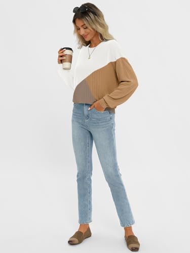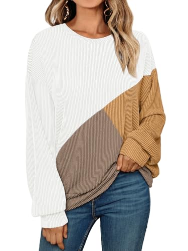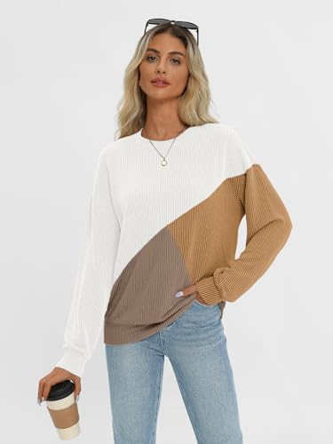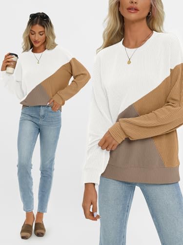 AUTOMET Womens Color Block Long Sleeve Top Crewneck Shirt 2024