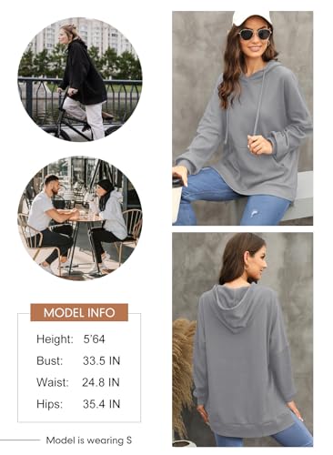 Dokotoo Oversized Hoodies for Women Casual Long Sleeve Waffle Knit Drawstring Side Slit Pullover Sweatshirts with Pocket