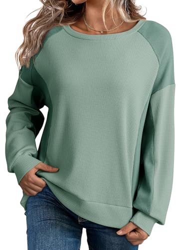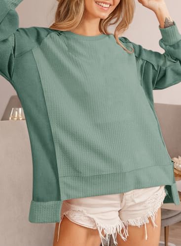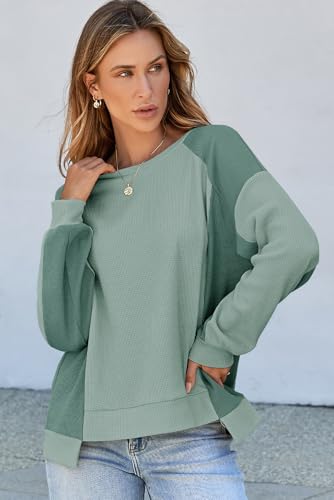 Dokotoo Oversized Sweatshirt for Women Waffle Knit Color Block Crewneck Long Sleeve Casual High Low Pullover Sweatshirts Tops