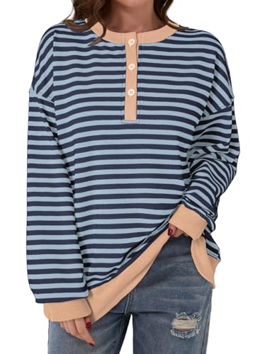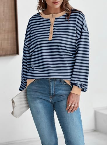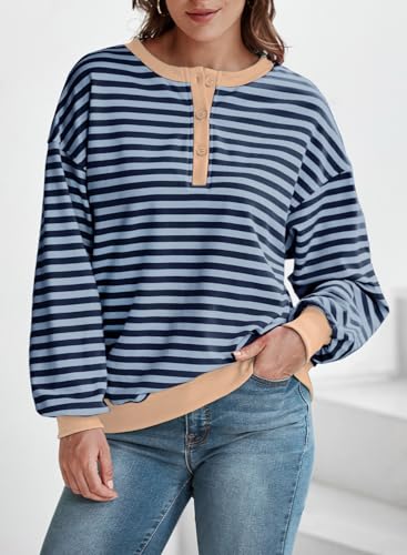 Dokotoo Womens Casual Crewneck Color Block Striped Oversized Sweatshirt Long Sleeve Shirts Tunic Tops