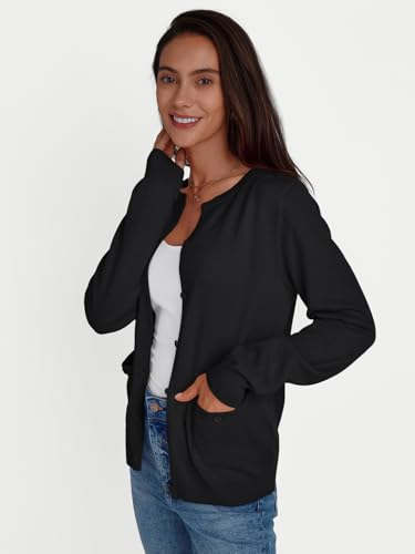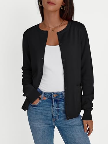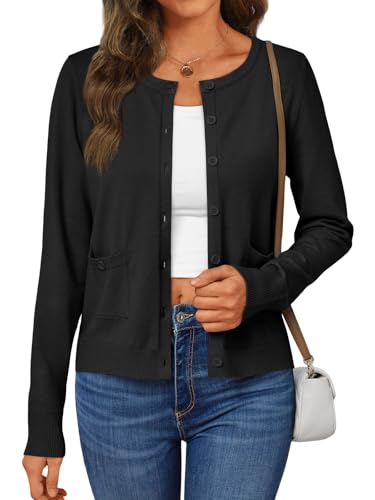 LILLUSORY Womens Cardigan Sweaters Cropped Lightweight Fall Open Front Long Sleeve Button Down Cardigan Shrugs Tops