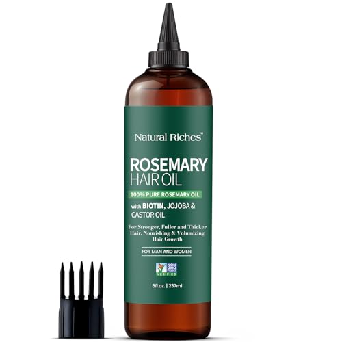 Natural Riches 100% Pure Premium Rosemary Oil For Hair Growth With Mint and Biotin Hair Strengthening Treatment | Nourishing & Volumizing | With Jojoba Oil & Castor Oil | Non GMO Verified 8 Fl oz.