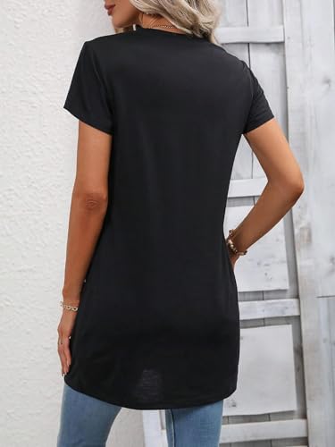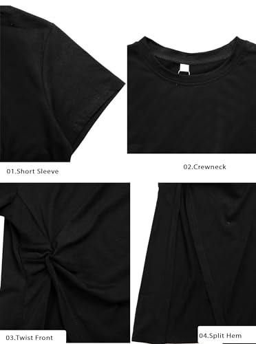 Remidoo Women’s Split Hem T Shirt Round Neck Short Sleeve Twist Front Top