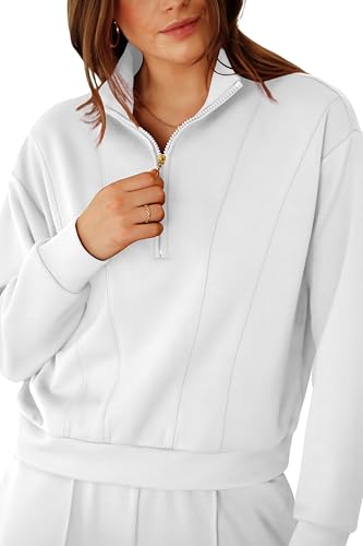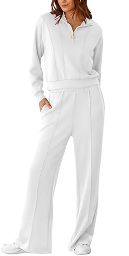 RUBZOOF Womens 2 Piece Outfits Sweatsuit Half Zip Sweatshirt Tracksuit Sweatpants Lounge Sets XS-2XL