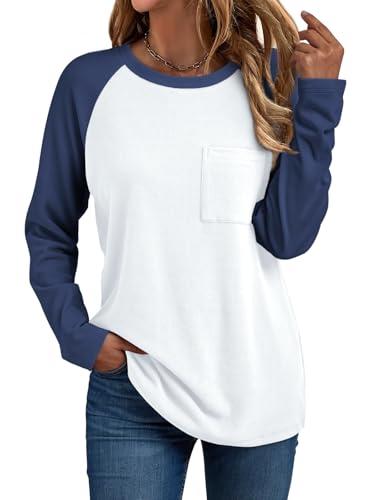 Trendy Queen Womens Crew Neck Long Sleeve Colorblock Shirts 2024