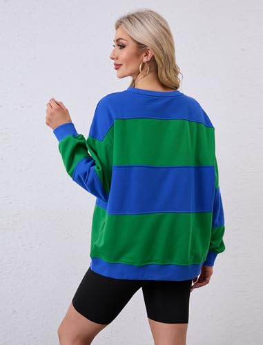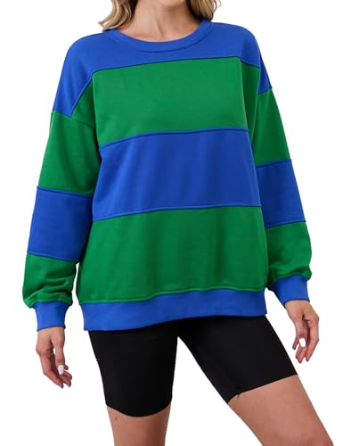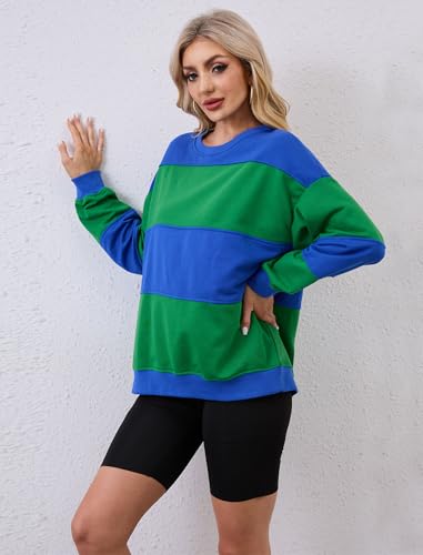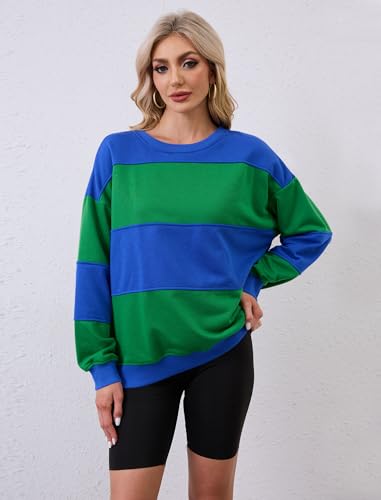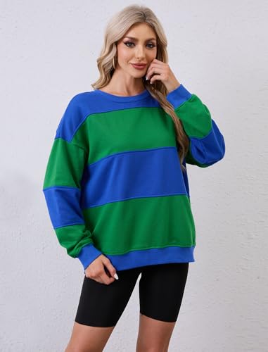Womens Color Block Sweatshirts Long Sleeve Crewneck Loose Fit Pullover Oversized 2024 Fall Outfits Clothes Y2K Tops