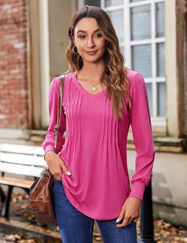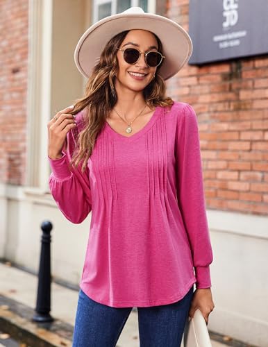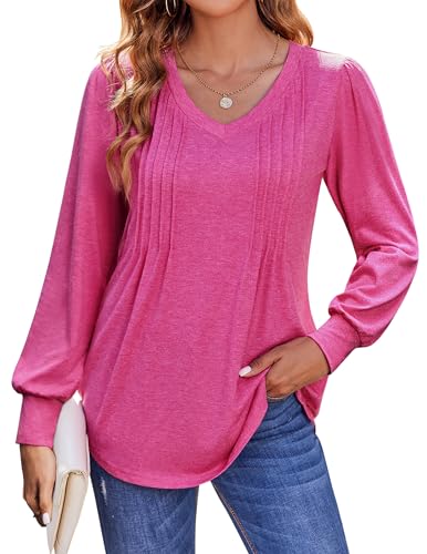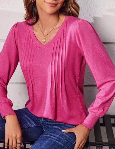 Zeagoo Women’S Puff Long Sleeve Shirts Pleated V Neck Fall Tunic Tops Blouse Dressy Causal Loose Summer T-Shirts